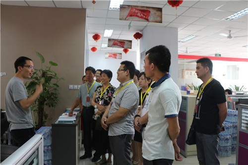 在公司CEO余進先生、行政部經理付士奇先生的帶領下,朱會長及會員們參觀了青峰網絡的所有辦公場所及旗下子公司。在參觀過程中,余總向大家介紹了公司的發展歷程和公司生態鏈,著重講解了公司文化和各項福利政策,朱會長及會員們表現出極高的興趣和贊同。